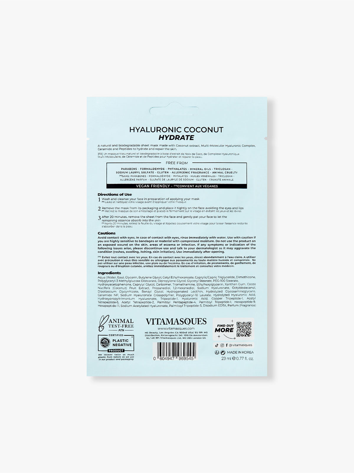 Hydrate and repair your skin with this natural and biodegradable Coconut Sheet Mask. Infused with coconut extract, multi-molecular hyaluronic acid complex, ceramide, and peptides, this mask delivers deep moisture and nourishment for a healthy, radiant complexion.